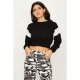 Jump on the crop trend and add our Black-White Shirred Hem Crop Sweat to your wardrobe! Designed as a cropped finish, it features contrasting panels and a shirred hem for extra detailing. Style with joggers and trainers for a chilled vibe.