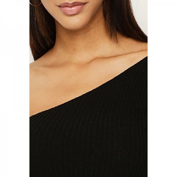 Add some style pieces to your knitwear wardrobe. Featuring this one shoulder crop top in a knitted fabric, this will add some flair to any casual outfit. Style with oversized joggers and chunky trainers for the ultimate off duty look. Or team with high waisted skinny jeans and heels for an outfit that's perfect for outdoor drinks with the girls!